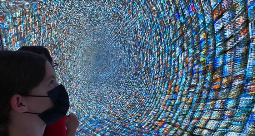 We spent an afternoon getting lost in and then racing each other through a hedge labyrinth. Another morning, we toured a Gaudi house with an overpriced and bizarre VR-driven tablet experience where tortoises swam out of windows and doors appeared where none appeared to exist. Around station #6 I asked the kids if we’re all looking around the room and seeing things that don’t appear to exist as real and the things that we see with our own eyes, including each other, disappear, how are we to determine what is real and what is not?