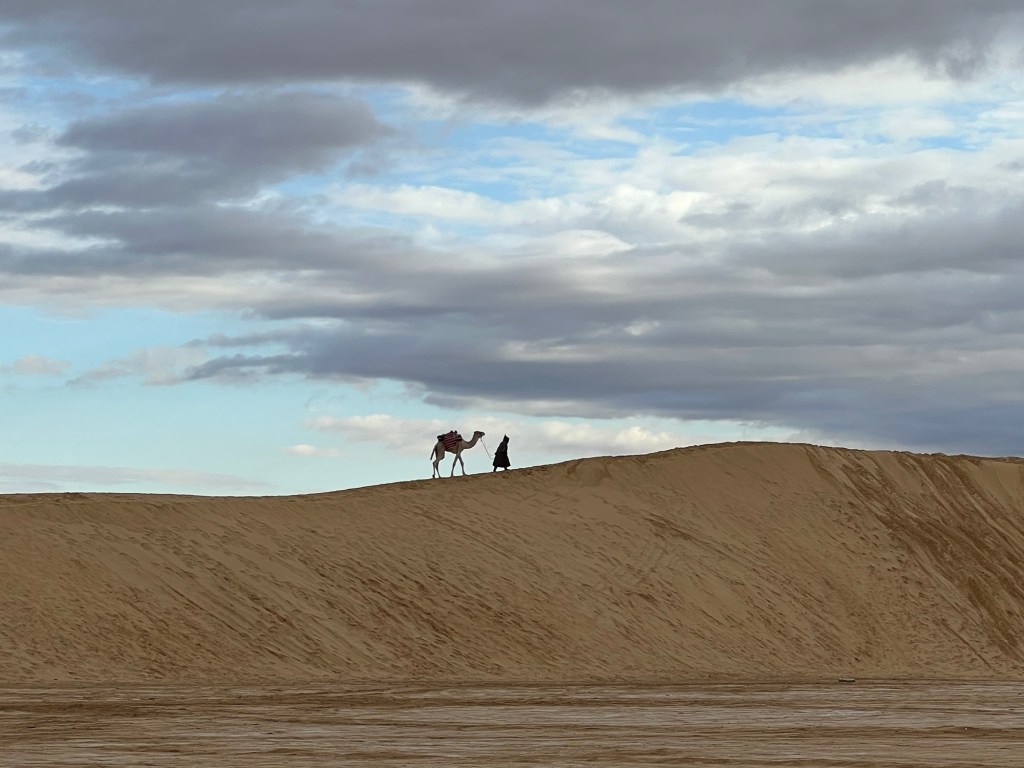 This was an operation. Prospective camel riders first entered a ticketing building to purchase a ride or Sahara-charge one’s ticket to include not just a camel ride through the dunes… but a 4-wheeler as well! At first, we planned to pass on the camel rides, but the Quad cycle upgrade convinced us to get back in the game (Jess with more than a bit of concern for the camels). Like any good amusement park experience, there were photos of you enjoying yourself for sale; cherished memories to take home from your trip to the South Tunisia Camel Caravan. So, for the next hour and a half, Jess and I wandered the northernmost stretch of the Sahara on camel back and tore through some dunes while doubling up on a quad cycle.