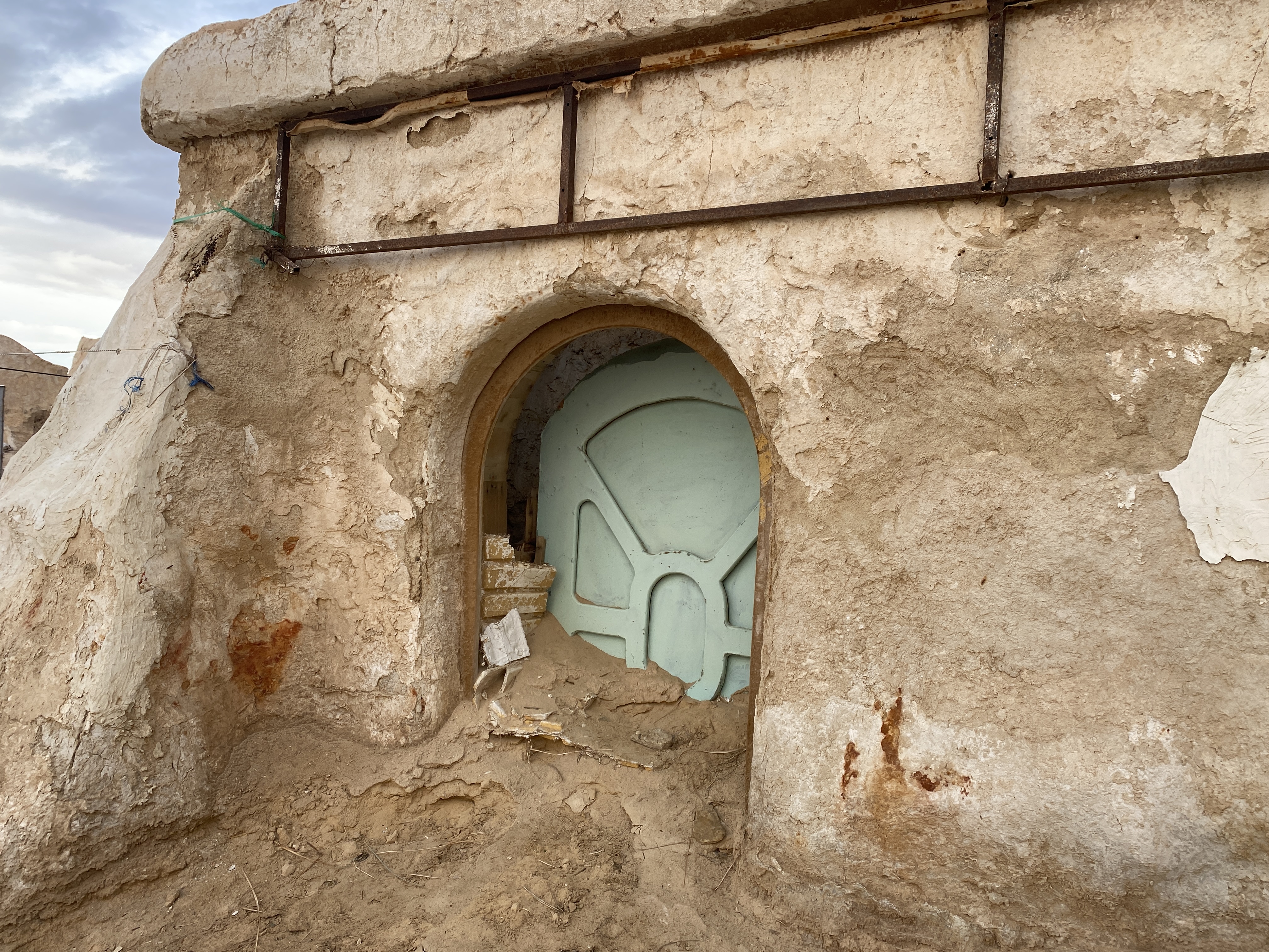 After a pre-dawn wake-up and a healthy dose of thick Tunisian coffee, our van headed out from the Oasis town of Douz, and we headed deeper into the Sahara of Stars Wars memories. Our destination that day was the abandoned set of Mos Espa, the city on the desert planet of Tatooine that plays a critical role in the Star Wars narrative. Though most notable for being the home of a young and enslaved Anakin Skywalker (for non-Star Wars junkies, that’s Darth Vader), Wookieepedia (yep, that’s a thing) notes that in Mos Espa “most residents either were involved in crime business with the Hutts or were poor shopkeepers and moisture farmers trying to eke out a living in the inhospitable desert.” Good, ordinary crime and moisture farming – or a bit of both, I guess, if you were in the moisture farming and distribution organized crime syndicate, perhaps the first users of the Wet Bandits moniker.
