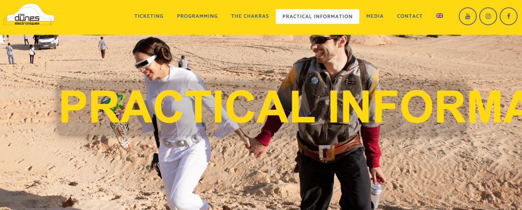 Recently, Mos Espa played host to the Star Wars themed Les Dunes Electronicas festival, a type of Star-Wars-themed Burning-Man/Rave in the desert. Beyond its collection of performers and music-makers, the Les Dunes Electronicas Festival features the opportunity to snack on local food (stuffed dates, couscous, light saber colored drinks), purchase handicrafts from local artisans, and participate in shaman-led yoga classes at sunrise that promise “recovery, relaxation and development of concentration skills await you in the middle of the desert,” an opportunity so potent that “it will give you the energy to continue your dancing the rest of the night.” Dance? We can dance… but where will we park our cars, their trunks filled with Stars Wars costumes? No worries, that, too, has been sorted out for you, young festival goer: “[There’s] no need for a millennium falcon, or even a 4×4,” the website promises, cars will be able to easily access our parking lot.” Though there is likely place for a millennium falcon – or 2 – to touch down in this vast expanse of sand.